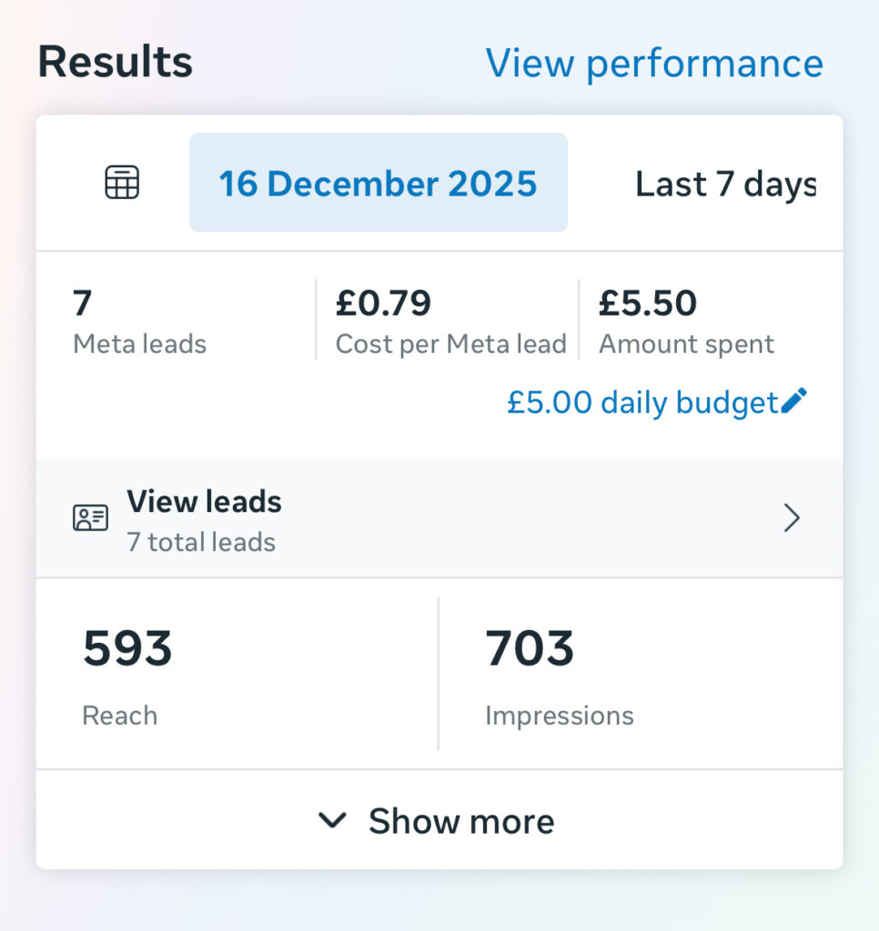“ We spent £5.50 and booked £370 worth of work in a single day. That is 7 high-quality leads for the price of a coffee. As a mobile detailing business, the lead quality is everything, and Mirrlees Digital delivered exactly what we needed. We aren’t stopping anytime soon.”